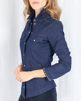 - Featuring Faceted Studs Along Shoulder Seam Cuff & Sleeve Placket