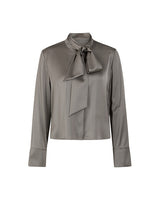 Embrace effortless charm with this silky grey blouse featuring a playful tie neck scarf for added flair. Its relaxed, slightly cropped shape pairs perfectly with this season’s fresh greys and browns, creating a unique and beautiful tone combo. Whether dressed up or down, it’s the versatile piece your wardrobe’s been waiting for.