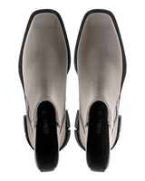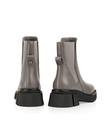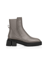Step into style with these grey leather ankle boots that perfectly blend trend and comfort. Their edgy square toe and chunky sole add a bold touch, while the jersey pull-on design with elasticated inserts and a back pull makes slipping them on effortless. Ideal for creating stylish, coordinated looks this season, these boots are a must-have for anyone who loves fashion with a practical twist.
