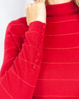 Funnel Neck Sweater With Lurex Stripe & Button Cuff