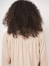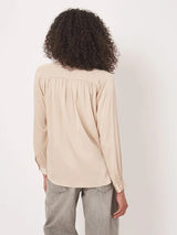 Experience effortless elegance with this stunning flowing silk shirt in a luxe oyster shade. Its relaxed fit drapes beautifully, enhanced by charming gathers at the front yoke and across the back. Perfect for adding a glamorous layer to any outfit or simply paired with your jeans.