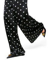 Achieve a stylish occassion look with these Polka Dot Palazzo Pants—featuring a super wide, dramatic silhouette in classic polka dot satin sheen. The high-waisted design with a flattering self belt cinches your waist perfectly, making every evening feel extra special.