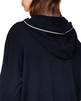 Stay comfy and stylish with the Navy Knit Hoodie! Its super soft fabric and sporty contrast white piping around the hood and pockets add a fun, casual vibe that’s perfect for everyday wear. Whether you’re out and about or just relaxing, this hoodie blends smart casual flair with playful comfort effortlessly.