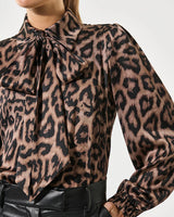 Kikki Silk Scarf Tie Neck Blouse In Animal