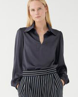 Introducing the Kikki Bow Blouse in Inkpot - a luxurious and versatile addition to your wardrobe. Made from Dea Kudibal's signature stretch silk, this blouse features an elegant silk scarf tie neck which you can choose to remove for a flattering v-shaped neckline offering versatile looks. The rich Inkpot colour is very unique and luxe. Elevate your style with this very useful blouse for styling under jackets, sweaters and tucked into wide leg pants.