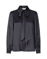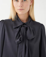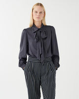 KIKKI Silk Scarf Tie Neck Blouse in Inkpot