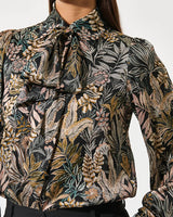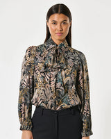 Kikki Silk Scarf Tie Neck Blouse Sencha Black