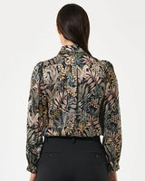 Introducing the Kikki Bow Blouse in Sencha Print - a luxurious and versatile addition to your wardrobe. Made from Dea Kudibal's signature stretch silk, this blouse features an elegant silk scarf tie neck which you can choose to remove for a flattering v-shaped neckline offering versatile looks. The unique Sencha floral print is very luxe and timeless. Elevate your style with this very useful blouse for styling under jackets, sweaters and tucked into wide leg pants.