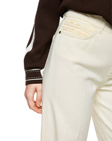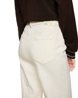 These high-waist wide cream jeans bring a playful sparkle with sequin and embroidered pocket details. Soft and beautifully crafted, their flattering fit adds a fun yet elegant touch to your wardrobe, perfect combination of comfort and style.
