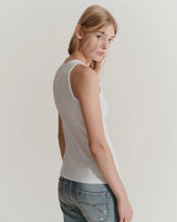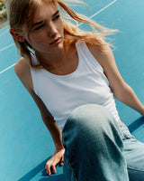 This must-have essential White rib vest is crafted from stretch cotton with a ribbed texture for a comfortable and flattering fit. Its rounded neckline makes it a versatile piece for any wardrobe. Perfect for everyday wear, this vest is a wardrobe essential that you can count on.