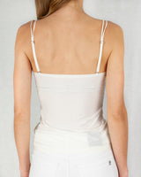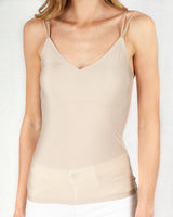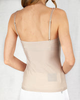 Super soft second skin camisole for layering under transparent blouses or tops, available in 3 essential colours. Features an adjustable double strap and laser cut, fused edges to ensure limited visibility underneath and limit movement.