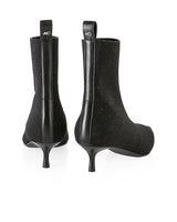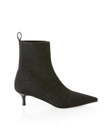 Step out in style with these playful pointed toe lurex sock boots. Featuring a sparkling knitted lurex fabric and a sleek pull-on design with leather back trim, they’re the perfect evening companion. The modern pointed toe and modest kitten heel blend chic elegance with comfort, making every step a confident statement. Easy to slip on and sure to dazzle, these boots add a fun twist to your night-out look.