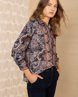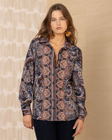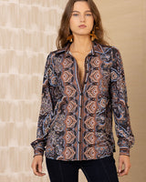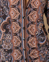 Add some fun flair to your wardrobe with this Soft Stretch Shirt featuring Hale Bob's mastered placement print. The antique-inspired border print runs playfully down the button placket, collar, and cuffs, creating a one-of-a-kind look. Its classic fit and soft stretch fabric promise comfort with a unique style twist you’ll love to show off.