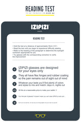 Available in Diopters + 1.5 & +2.0 (Use the Izipizi Reading Test to learn your Diopter)