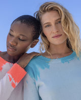 Spice up your weekend wardrobe with our Tie Dye Sweater in Aqua. This striking and unique sweater features a simple fit that pairs perfectly with your favourite jeans. Add a pop of playful colour to any outfit with this quirky and fun piece. Also available in Pink.