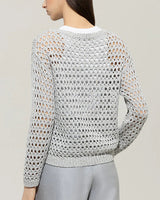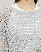 Add a splash of shimmer to your casual look with this silver-grey fish net lurex knit sweater. Light with an effortlessly drape, it flows beautifully for a relaxed fit that's perfect over jeans or paired with matching grey pieces for a chic, stylish vibe. It’s the playful twist your wardrobe has been waiting for!