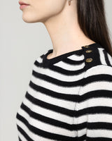 Cashmere Blend Stripe Sweater With Gold Buttons