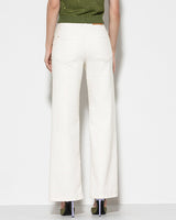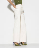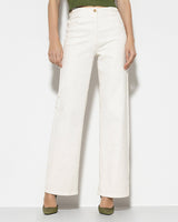 Indulge in the elegance and luxury of our Wide Cream Jean. Crafted from nice, thick denim, this winter white jean features a wide leg style and a gold chain waistband decoartion for a touch of vintage glamour. Perfect for creating a fresh and stylish winter look.