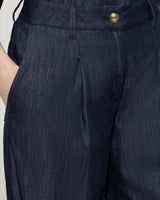 Step into effortless style with our Wide Chambray Pant. Made from lightweight chambray cotton, these pants flow with a relaxed wide-leg fit and feature a pleated front that adds to the fashion forward silhouette. Pair them with the matching chambray blouse for an edgy outfit that's perfect for dressing up or keeping it cool and casual.