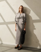 Get ready to make a statement in this Silver satin blouson jacket! This modern blouson shape jacket is made from heavy satin and has a subtle sheen, perfect for dressing up or down. The viscose, cotton, and linen base and the concealed elasticated hem and cuffs of the jacket provide comfort and a perfect fit.
