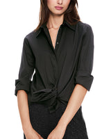 Diamante Trim Cotton Shirt in Black