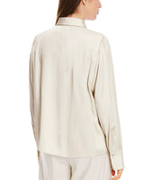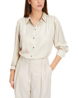 Indulge in timeless elegance with our Oyster Satin Blouse. The luxurious oyster color and rippling satin fabric add a touch of sophistication to any outfit. Featuring a full sleeve with dropped armhole and gently gathered shoulders, this button-through blouse is a must-have for any fashion-forward wardrobe. Elevate your style with this exclusive luxury blouse.