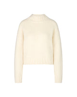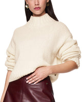 Stay cozy and chic in this chunky cream knit sweater featuring a modern fit with a funnel neck. Its gentle cocoon shape and relaxed fit wrap you in luxe comfort, making it your go-to for effortlessly stylish layering.