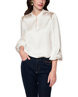 EMBROIDERED SHOULDER & CUFF BLOUSE