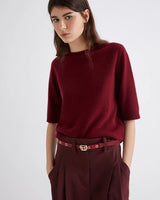 The Short Sleeve Rolled Edge Sweater is your go-to for effortless style and cozy vibes. Offering a great choice to adopt the new season burgundy trend. With its neat shape, rolled edge neckline, and cute cuffed cropped sleeves, this super-soft cream knit is as luxe as it is versatile. Perfect for layering, it adds a subtle touch of chic to any outfit while keeping things delightfully comfy and endlessly stylish.