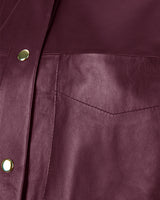 This modern cropped leather jacket in a rich new-season burgundy is your go-to for lightweight style. With 3/4 length sleeves, front patch pocket and a snap-button closure, it layers effortlessly over our matching burgundy blouses and knitwear. Pair it with the coordinating pants for a chic, head-to-toe look that’s very stylish.
