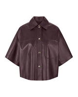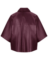 Cropped Short Sleeve Leather Jacket in Burgundy