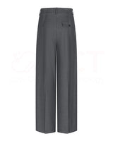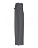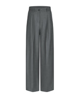 Sophistication Wide Flannel Tailored Pants in Grey. Their super stylish pleated front offers a modern fit, while the cozy flannel-like wool fabric keeps things casual. Perfectly paired with a neat knit sweater, they're your new favourite go-to for effortless, tailored style with a comfy twist.