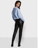 Part of the very current athleisure trend, these genuine sheep leather joggers are the asset to go out for urban and trendy looks! Soft and fine genuine leather, comfort fit, 7/8 length with raw cut edge, elastic waist with drawstring, side pockets at the front, decorative pockets at the back and unlined.