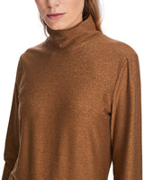 Add a touch of elegance to your wardrobe with our Copper lurex top. This simple yet stunning turtle neck top features a luxurious copper colour that is perfect for layering with our coordinating coats. Its stretchy fabric offers comfort and versatility. Elevate your basics wardrobe with our selection of lurex essentials ideal for layering.