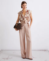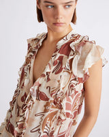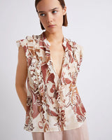 RUST & PINK FLORAL PRINT FRILL TOP