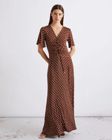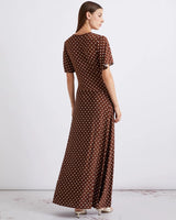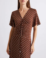 SILKY SOFT JERSEY BROWN AND WHITE POLKA DOT DRESS
