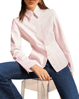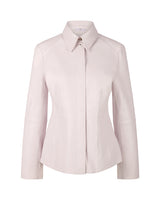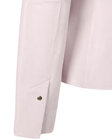 Introducing our Pastel Pink Leather Shacket - stunning in color and fit. Made with super soft leather, this unique shirt jacket offers a flattering silhouette. Complete the look with our coordinating vest for a fresh and luxurious outfit. Perfect to wear open, paired with blue or white denim.
