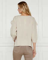Indulge in luxurious comfort with our Norois Fringed V Neck Tabard Sweater. The intricate fringe and cable detail, along with the tie sides, create a tabard feature that is very stylish and cosy appearance. Made from a luxe cream knitwear this sweater is the epitome of elegance and style. Elevate your wardrobe with this exclusive piece.